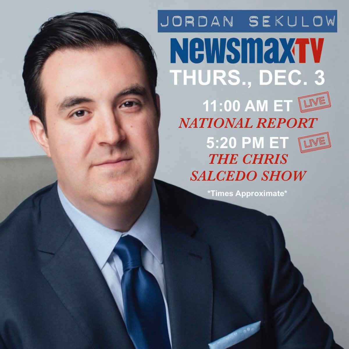 @Newsmax today as I will be appearing on: National Report at 11 AM ET The Chris Salcedo Show at 5:20 PM ETpic.twitter.com/z8ald8f44f