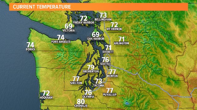 @seatac yesterday (old record 92 in 1958) we should be close to the same today in the upper80's and low 90's. However record is 98 - it's safe - thankfully! Marine clouds along the coast are a sign of cooling by midweek!pic.twitter.com/UKIp0dna0S