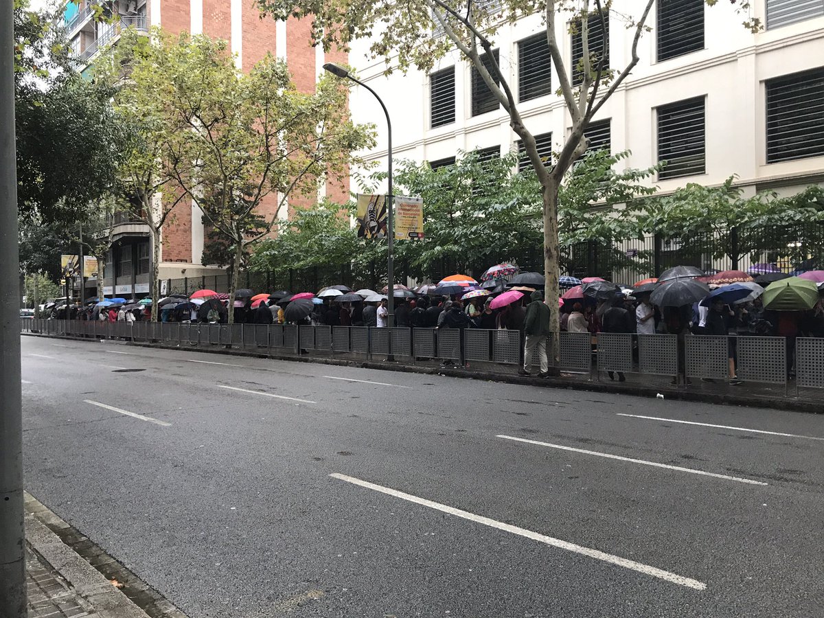 Tancats dins escola Diputació /Viladomat. La poli és fora. Milers asseguts a terra al carrer. Portes barrades. Veniu.pic.twitter.com/Hv0PKl0UII