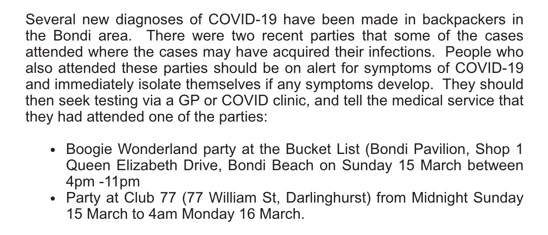 @JoshButler, just like the Aus Gov site this says, self-isolate if you show symptoms, people on Bondi and in pubs and clubs and restaurants were most likely totally compliant with that messaging. -