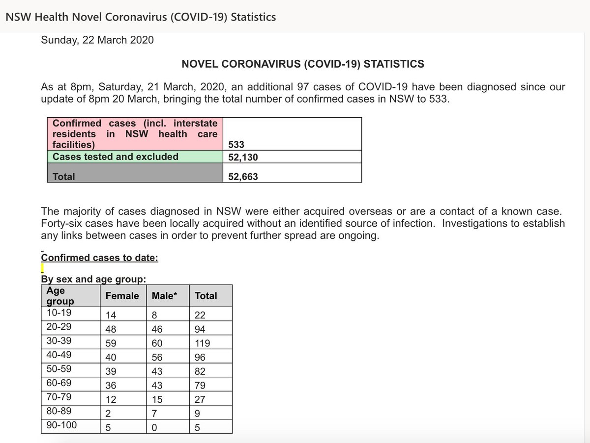 8pm yesterday, NSW has 533 total cases - increase of 97