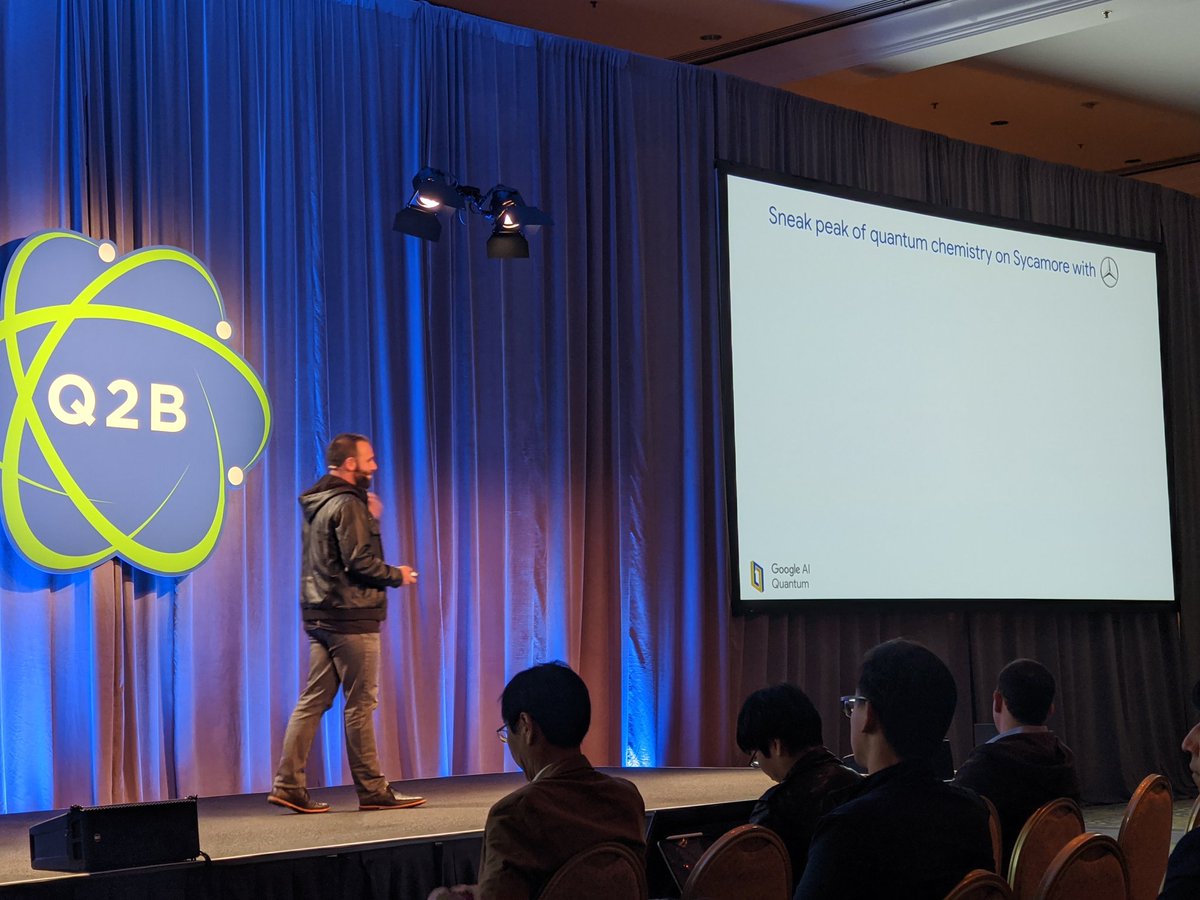 Babbush announcing new results using the Google Sycamore chip (@GoogleAI +@Daimler collab) simulating the H12 molecule (largest VQE to date) #Q2B19pic.twitter.com/4Ka8Tseis1