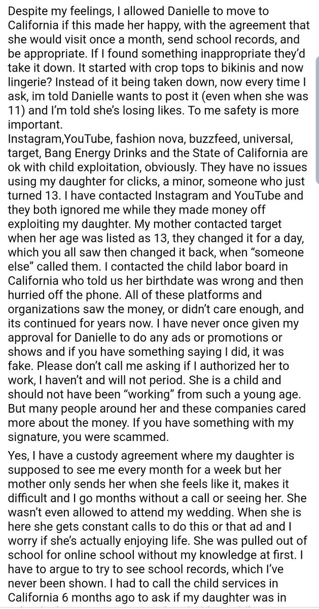 Here the the rest of the post, Dustin Cohn went off on @youtube, @instagram, @BangEnergyDrink, @twitter, @buzzfeed, @UniversalPics and the State of California for being involved in CHILD EXPLOITATION I wonder what their response will be, now that everyone knows her true agepic.twitter.com/GN2xyTb1Fe