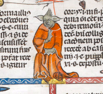 Sure baby Yoda is cute and all, but have you seen medieval Yoda? This little guy features in a manuscript dating from 1300-1340 as an illustration for the biblical story of Samson