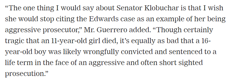 In particular, her normal answer about "new evidence" is a dodge, it was not new evidence, it is new reporting about the EVIDENCE AMY KLOBUCHAR used to convict Myon Burrell The new revelation is that she convicted based on shady witnesses (jail-house snitch)