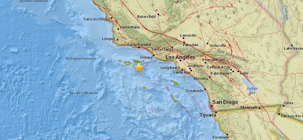 #earthquake just hit off the coast of Southern California with shaking felt in Los Angeles, according to the USGS. There is no#tsunami danger.pic.twitter.com/Q27GPreQ2x