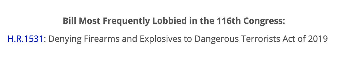 @OpenSecretsDC that in the last Congress, NRA lobbied hardest against a bill that would've denied gun transfers + explosives licenses to terrorists