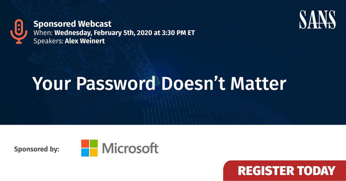 @Alex_T_Weinert. We'll also share how Microsoft can help you get on the path to eliminating passwords. Register now: https://msft.it/6018TZYho pic.twitter.com/YLVn4zs3al