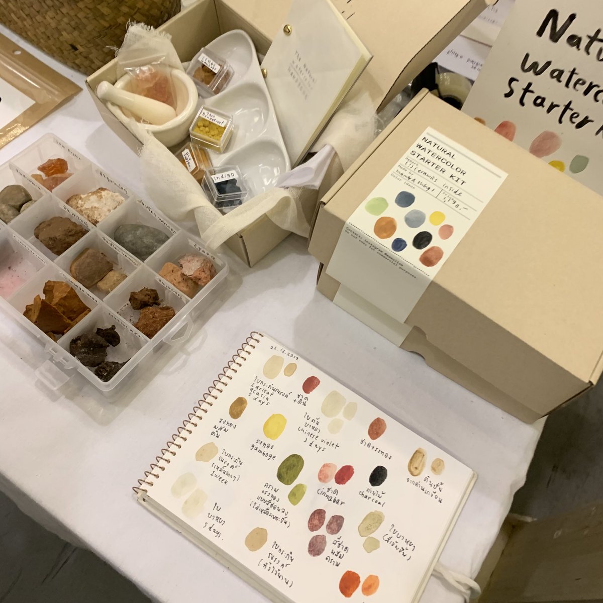 ประทับใจมาก เป็นสีที่ทำมาจากธรรมชาติ ได้คุยกับเค้าแล้วยิ่งอยากซื้อ เป็นการเอาหิน เอาดิน ดอกไม้ ใบไม้ ต่างๆมาทำสี แล้วสีที่ได้ออกมาคือน่ารักมากกกกก อยากไปworkshopมากๆ ใครไปงานไม่ทันสั่งออนไลน์ได้ด้วยนะคะ