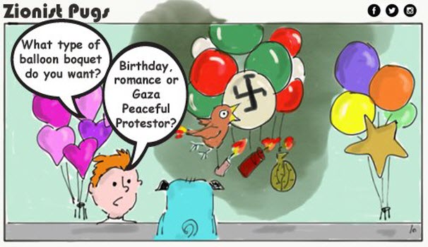 Another terror attempt directed at the children of #Israel, courtesy of the 'peaceful protestors' in #Gaza... https://www.israellycool.com/2018/11/02/zionist-pugs-cartoon-balloon-animals/ …pic.twitter.com/CAcLs8PCgE