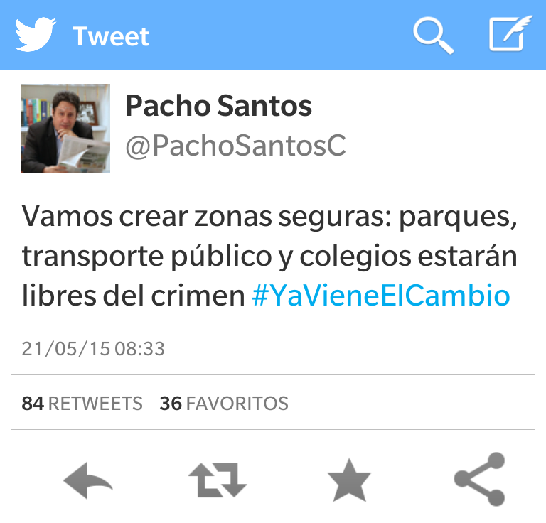 @JuanManSantos @GeneralPalomino Estas son las ideas del nuevo alcalde de Bogotá https://twitter.com/pachosantosc/status/601380200509739008 … #EstoyConPacho
