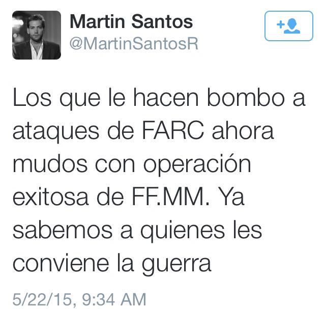 @JuanManSantos confunde el agradecimiento de Colombia a sus FFAA, con idiotas@MartinSantosR que reclaman aplausospic.twitter.com/2D2IqtuBXF