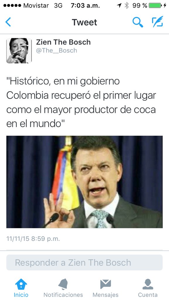 @JuanManSantos con el Gobierno del presidente santos colombia esta desbaratada es una sodoma y Gomorra mas delincuencia y narcotráficoThanks. Twitter will use this to make your timeline better. UndoUndo