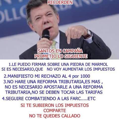 #ComoDigoUnaCosaDigoOtra .@JuanManSantos no solo ha incumplido todas sus promesas, sino q ha hecho todo lo contrariopic.twitter.com/6DULMUmPlb