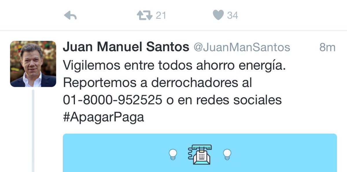 @JuanManSantos . No deja de trinar gastando la luz de todos los colombianos#ApagarPaga - 1 more reply