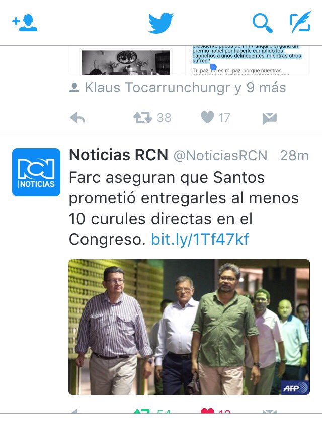 @JuanManSantos usted quiere beneficiar a su otra famila las (farc) pero tenes un gran problema hay 36 millones d colombianos en contra d eso -