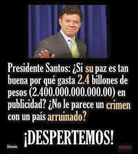 con lo q esta haciendo santos con colombia pronto estaremos como en Venezuela Crisis total. No al plebiscito