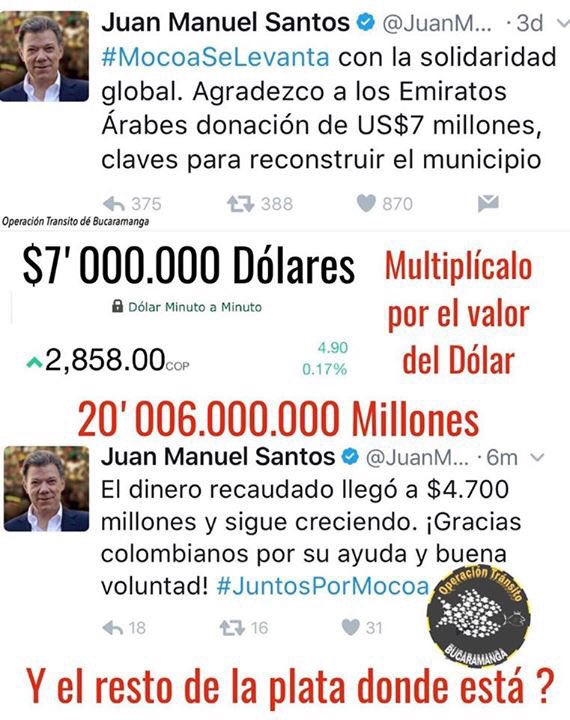 Presidente : que ahora no vaya a suceder lo de Armero...las ayudas terminaron en manos de políticos ladrones...
