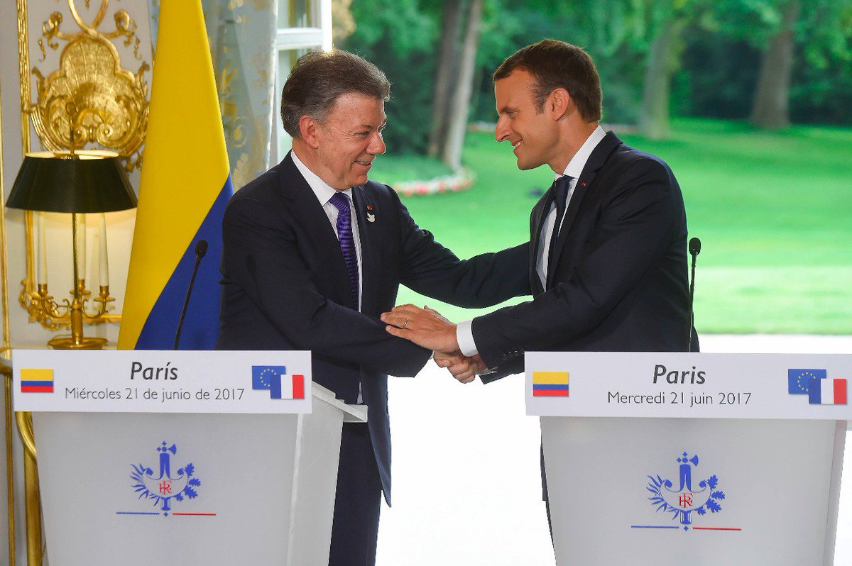 @EmmanuelMacron por su apoyo a la paz de Colombia. Invertir en la paz es invertir en el futuro.#ColombiaFrancia2017"pic.twitter.com/RnDZKGOlUK