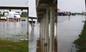 Reiteramos, se han registrado de nuevo fuertes lluvias y no se han presentado inundaciones en el Aeropuerto. Las fotos no son recientes.