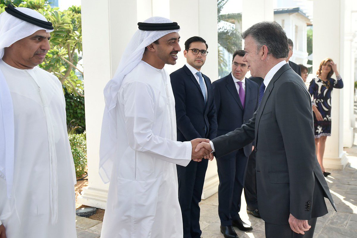 Muy positiva la reunión con el príncipe @MohamedBinZayed. Emiratos Árabes tienen gran interés de invertir más en infraestructura, agro y medio ambiente en Colombiapic.twitter.com/JC3xGQtGyC