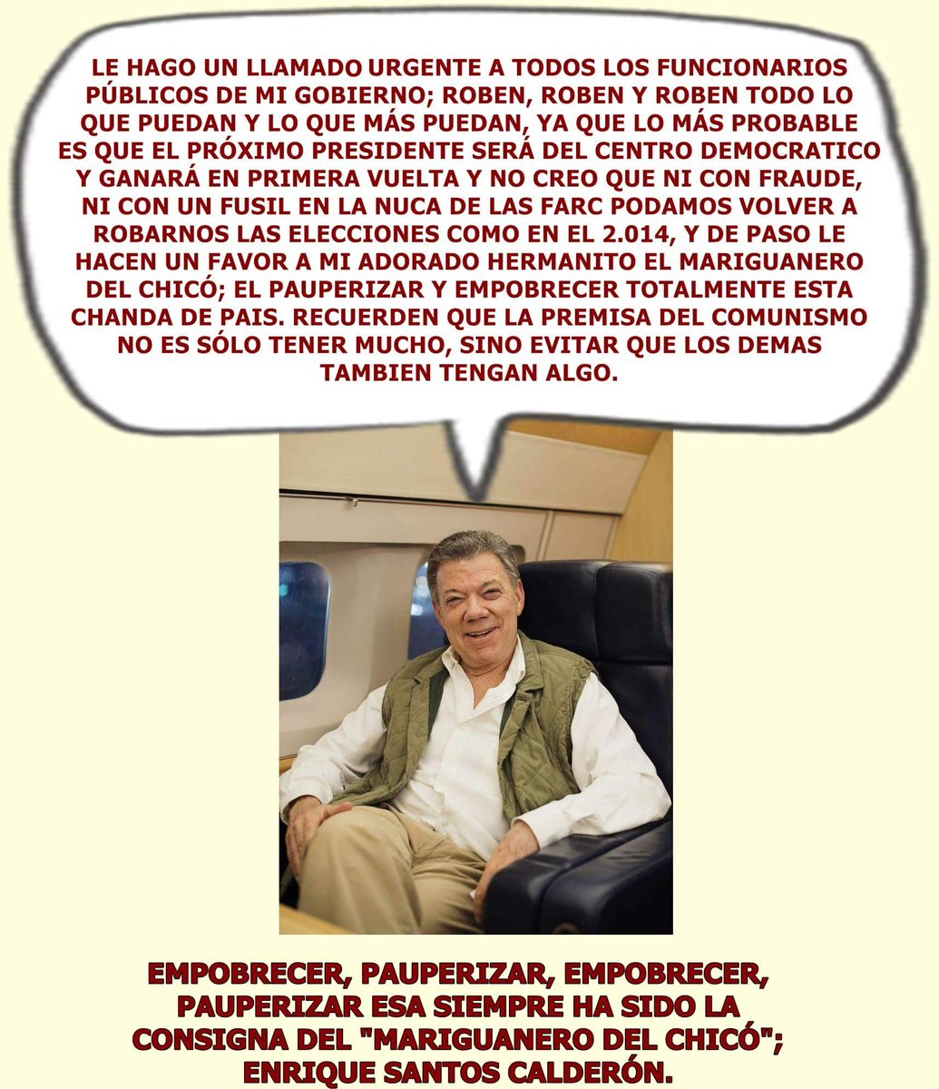 Oiga Gago, de cuál paz es que usted habla en el exterior si aquí el secuestro, la cocaína, la criminalidad va en aumento, la vida más cara y el gobierno quebrado por estar manteniendo a sus malditos camaradas narcoterroristas, de cuál HP paz, cómo puede ser tan descarado