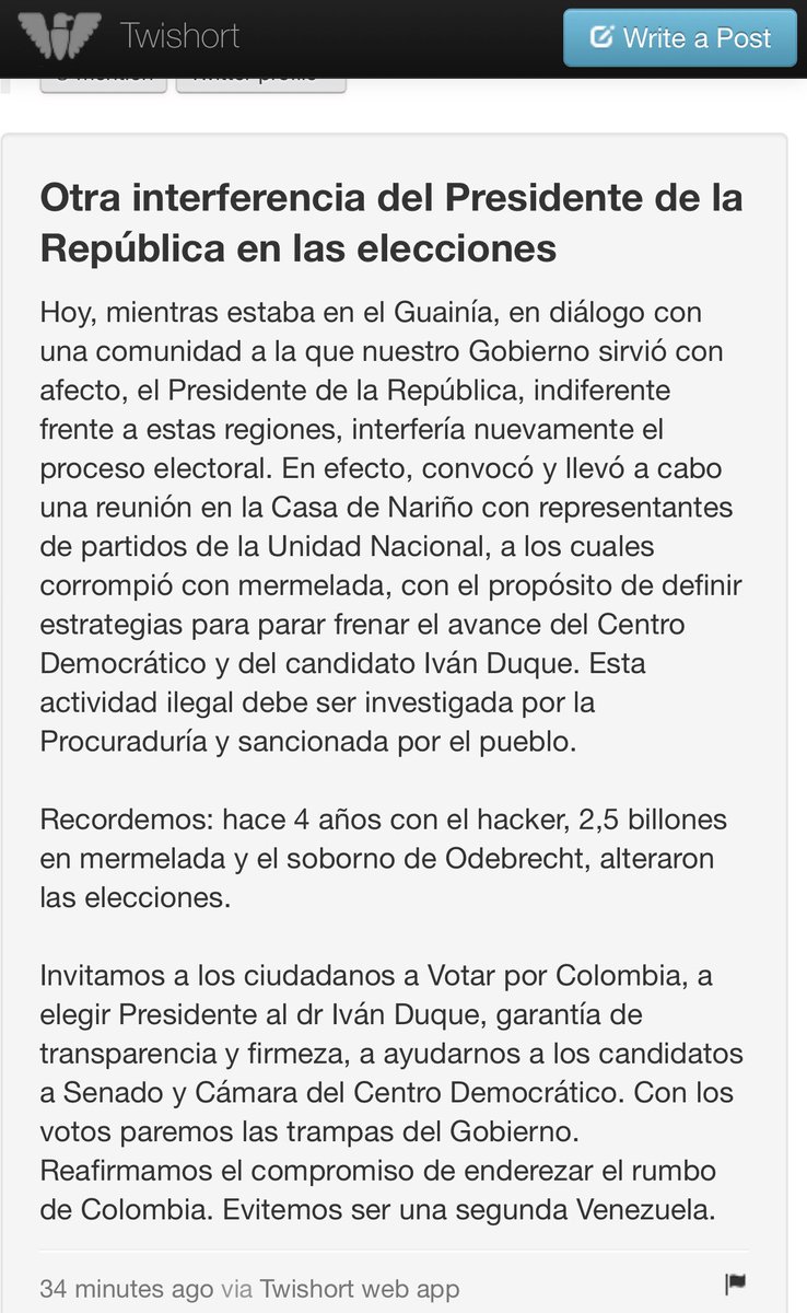 @CNE_COLOMBIA > @JuanManSantos ATACA DE NUEVO. No sólo URIBE lo dice. Lo confirma GAVIRIA su "aliado " de la PAS .