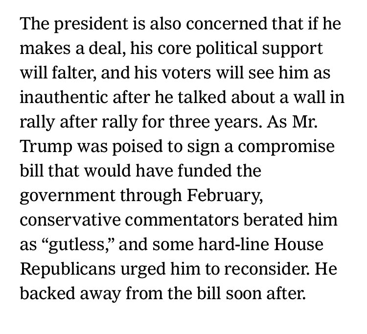 Interesting that Trump thinks his voters will see him as “inauthentic” unless he shuts down the government until Congress appropriates taxpayer money to fund a wall when he actually promised that the wall wouldn’t cost taxpayers anything because Mexico would pay for itpic.twitter.com/o3Rmqm9q3M