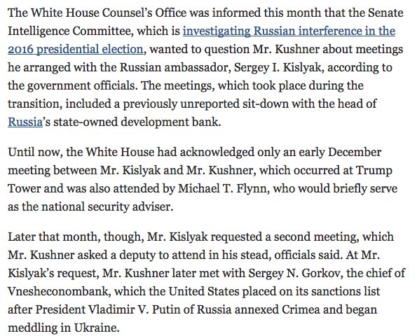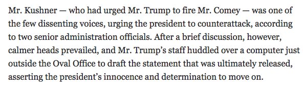 Kushner was also a leading voice to fire Comey https://goo.gl/4OrHo5 pic.twitter.com/F5JAQVUSpS