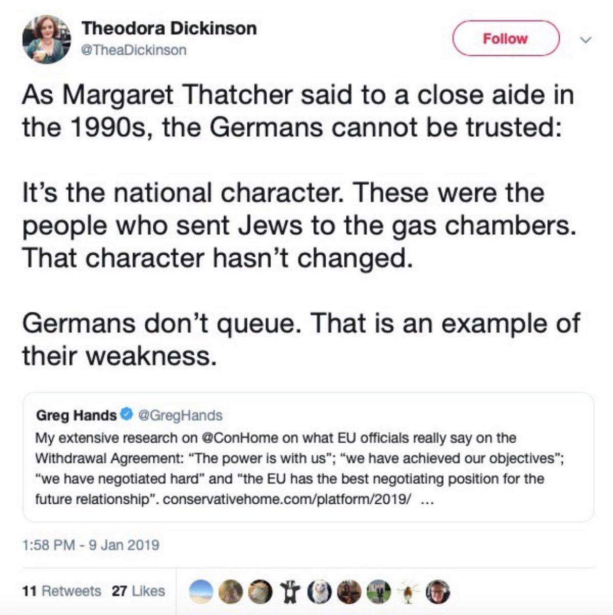 Julia’s position: “I can’t wait to leave with no deal so we can do an amazing trade deal with Chile and Trump, that will defo help the people of Hornchurch and Upminster.” FFS when will the establishment put their constituents before themselves?