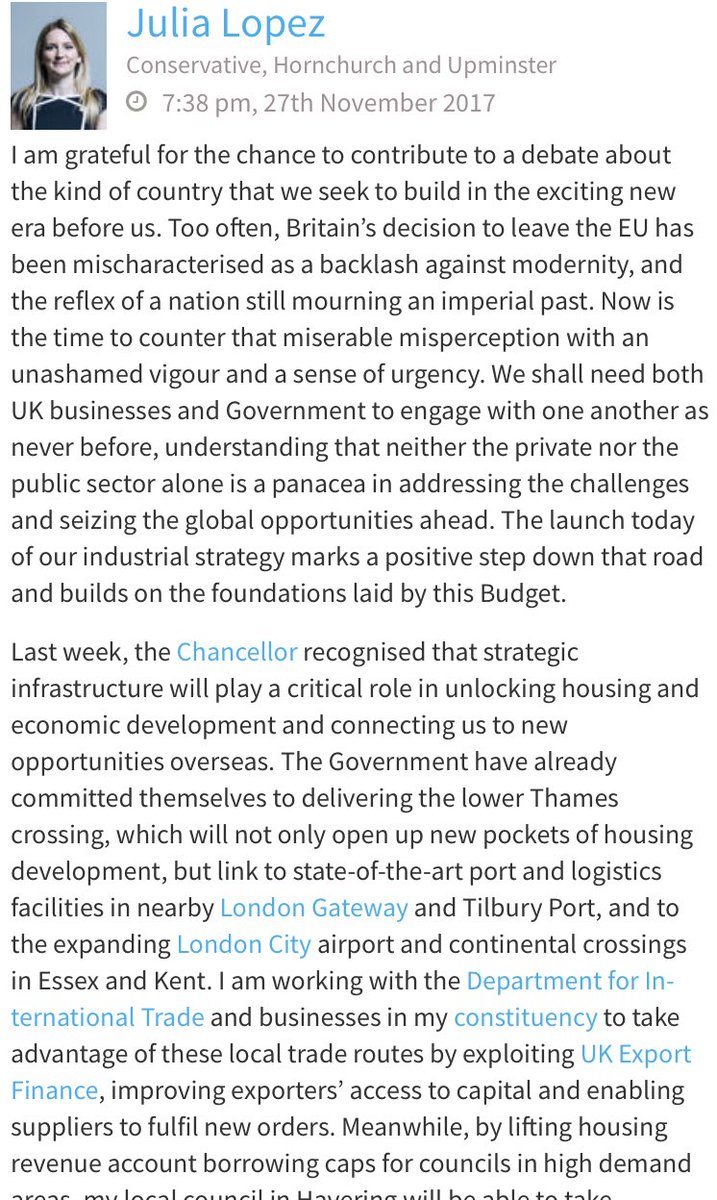 My contribution to yesterday’s Global Britain section of the Budget debate, highlighting opportunities for collaboration between government, business, universities and international partners; Havering’s housing regeneration programme; and local export opportunities.pic.twitter.com/IPND3DBBhA