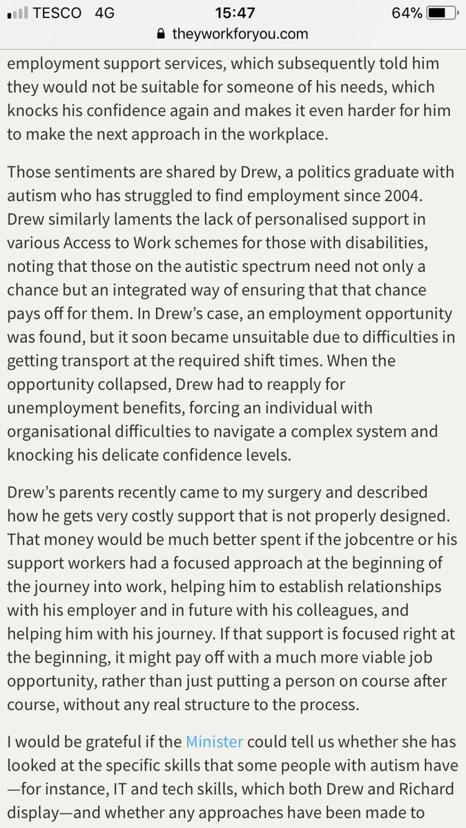 My contribution to @LukeGrahamMP excellent debate on the Disability Confident programme to help disabled people get into work. I was able to raise cases of two talented jobseekers with autism in our constituency and some of challenges they face in securing the right position.pic.twitter.com/LhYyUrg0k2