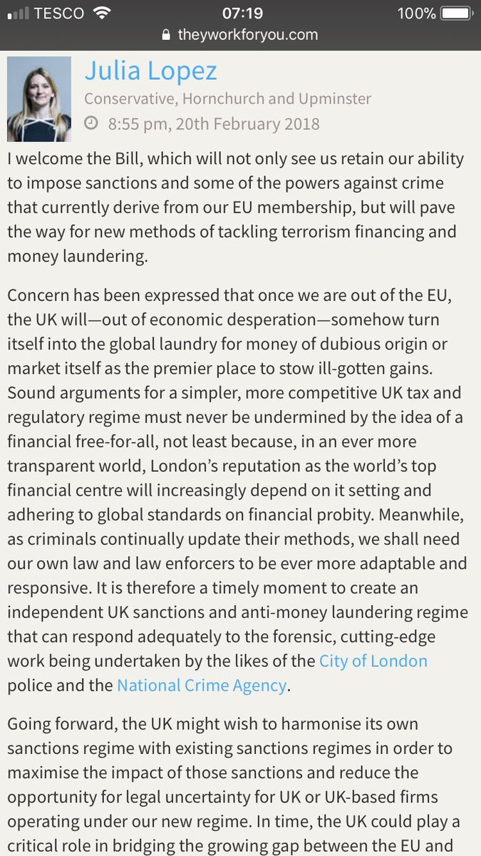 Last night I spoke on the Sanctions and Anti-Money Laundering Bill. Here’s my contribution in which I welcome progress towards a register of overseas owners of London property to bring transparency and reduce chance of property in capital being used to launder proceeds of crime.pic.twitter.com/hSGgnbBVaM