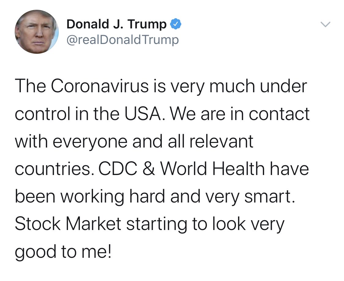 @POTUS You were briefed about the high probability of a PANDEMIC. You chose to ignore it. Negligent manslaughter of 54,806 and counting. Waiting three months before telling the truth about this Virus. Your fault.Bedankt, Twitter gebruikt dit om je tijdlijn te verbeteren. Ongedaan makenOngedaan maken