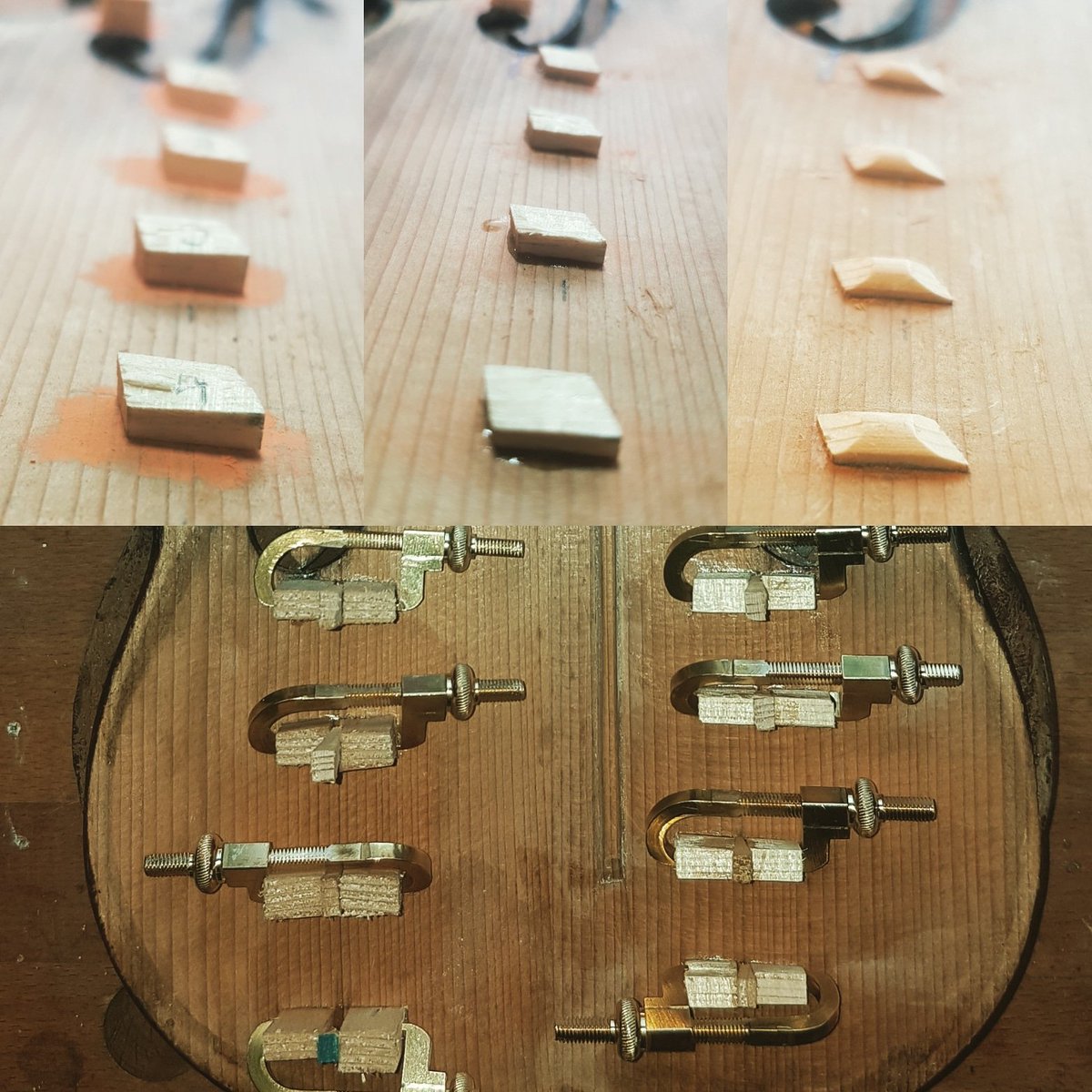 #violin to fitting the studs, gluing them and shaping. Job done#luthier#repairing#repairer#luthierslife#restorationpic.twitter.com/2aEoP1g8F9