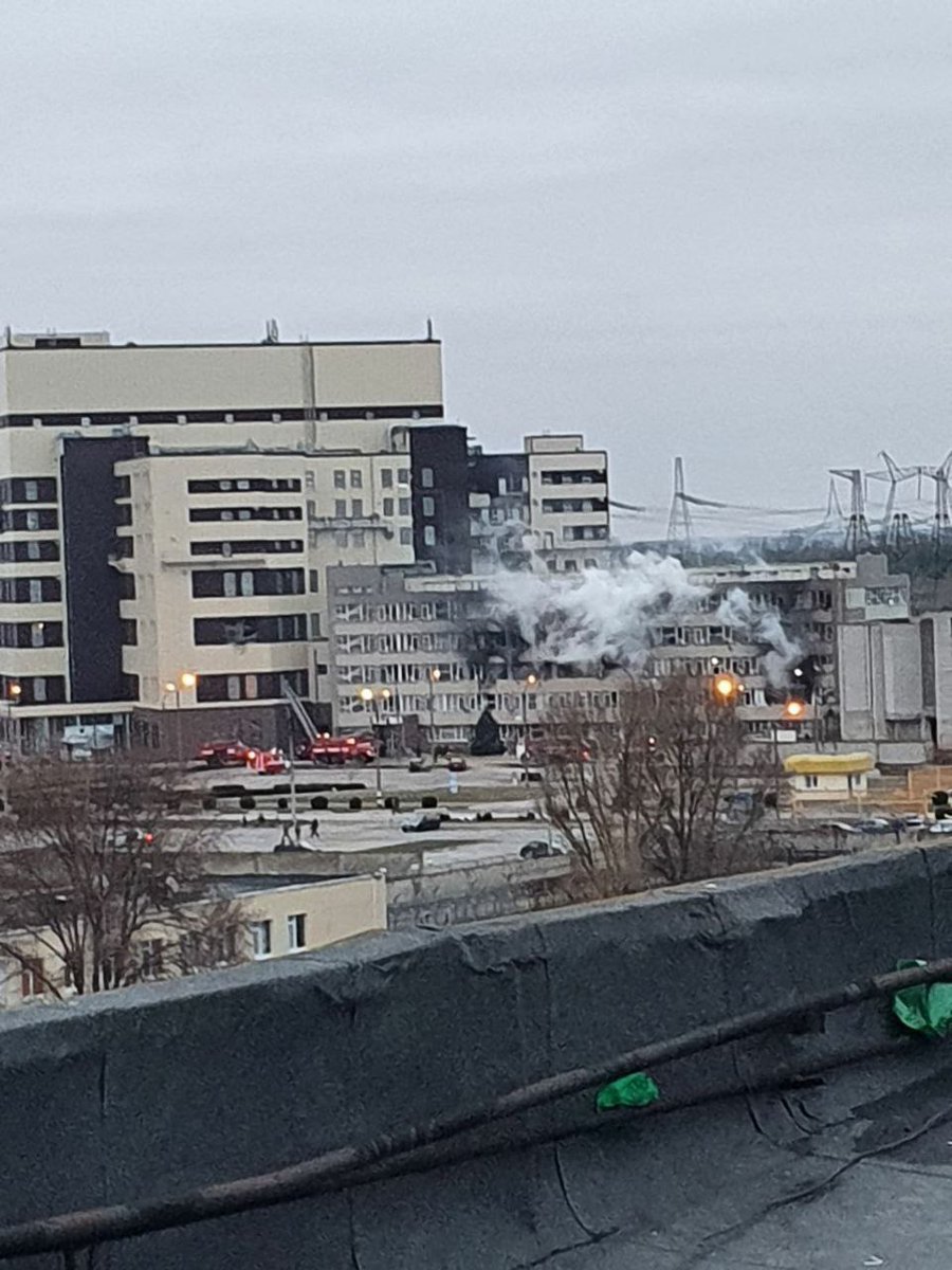 Die russische Armee hat das größte Atomkraftwerk Europas erobert. Die ukrainischen Verteidiger wurden geschlagen. Gefechtsschaden nur am administrativen Teil des Kraftwerks sichtbar. Die Feuerwehr ist vor Ort im Einsatz.