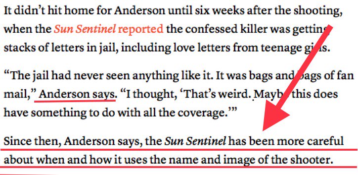 Publishing details of letters by perp are not newsworthy. This is how tabloid journalism works & isn't worthy of @orlandosentinel. EditorInChief @Juliea712 vowed to be more aware of premise of #nonotoriety for mass shooters&contagion effect.Why did she vow one thing & do another?pic.twitter.com/9eZ1JTe5MO
