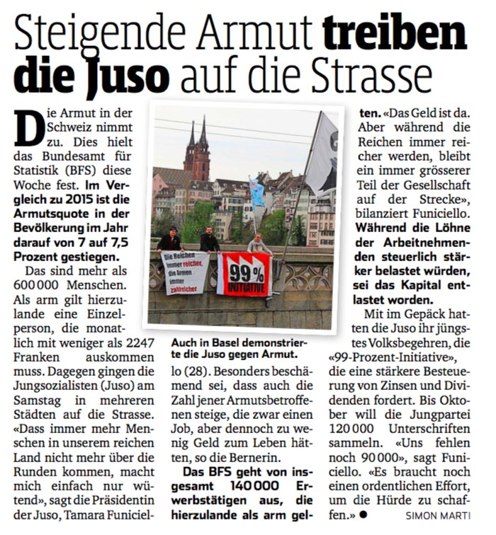 Das Geld ist da. Aber während die Reichen immer reicher werden, bleibt ein immer grösserer Teil der Gesellschaft auf der Strecke. Genau deshalb braucht es die 99%-Initiative. Jetzt unterschreiben: https://wecollect.ch/de/campaign/99prozent-initiative …