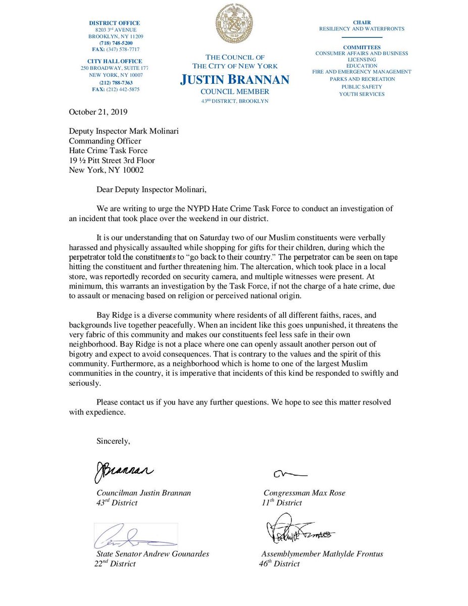 @NYPD68Pct Community Affairs and Hate Crime Task Force are looking into the incident. -