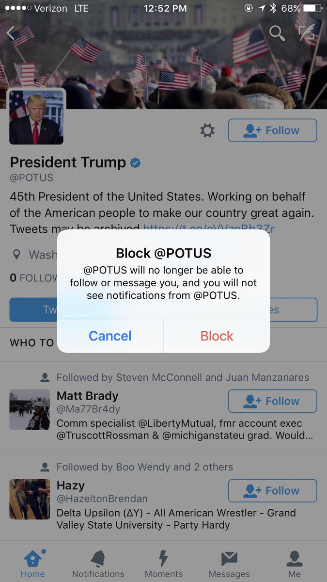 Never thought I'd block the president of my country. Weird feels.pic.twitter.com/E6JZQp44RJ