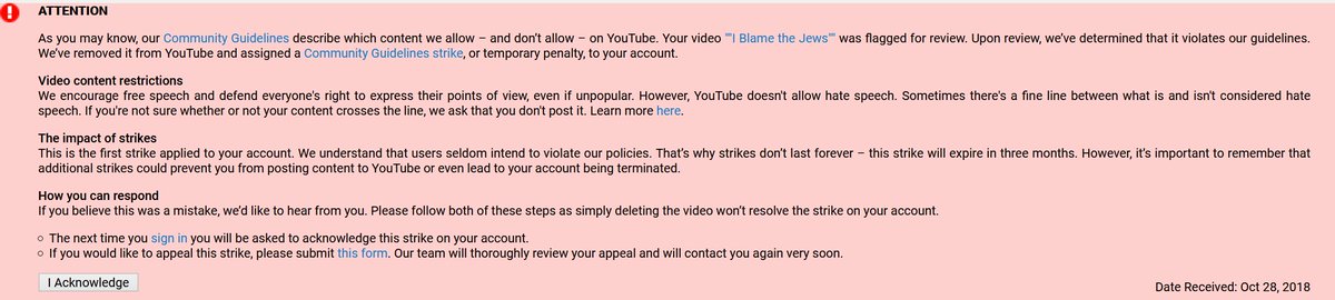 Censored by @TeamYouTube for denouncing extremism and encouraging calm and rationality during times of tragedy. Glad to know YouTube opposes such views.pic.twitter.com/gmau5eUxry