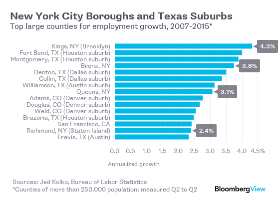 America's job engine is Brooklyn. Followed by a couple Houston suburbs and then the Bronx http://www.bloombergview.com/articles/2016-01-21/want-a-job-go-to-brooklyn …pic.twitter.com/oOnPek3oLA