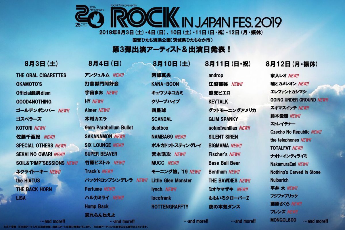【LIVE INFO】 8/10(sat) "ROCK IN JAPAN FES.2019" @国営ひたち海浜公園 出演決定!!