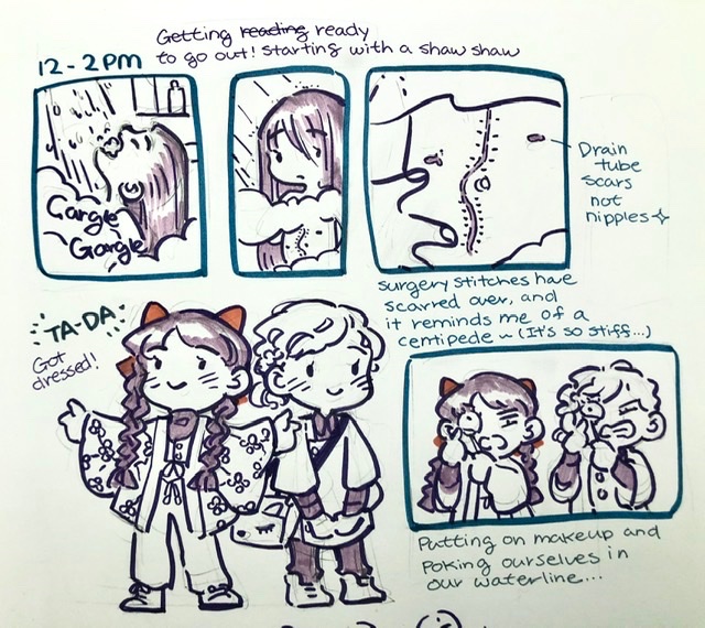 12-2pm~ They are drainage tube scars XD I know they look like something else lol