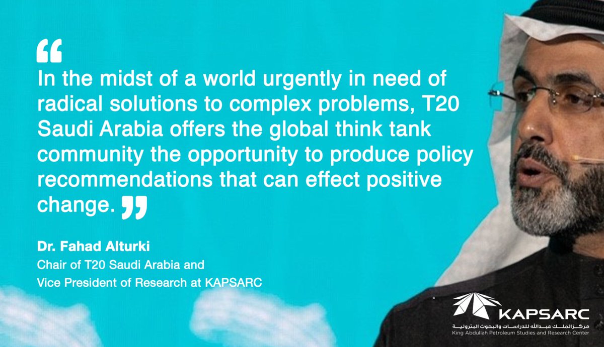 Dr. Fahad Alturki, Vice President of Research at KAPSARC and Chair of T20 Saudi Arabia, delivered his outline for the vision and objectives of