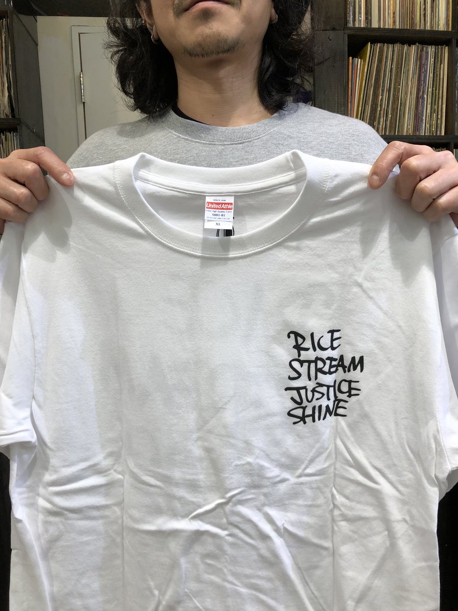 「あのTシャツはもうないのか?」「生地もうちょい厚いほうが...」そんな声に悩まされて来た。RICE STREAM JUSTICE SHINE Tee 奇跡のバージョンアップ再リリース。お値段据え置き2,000円。問い合わせは