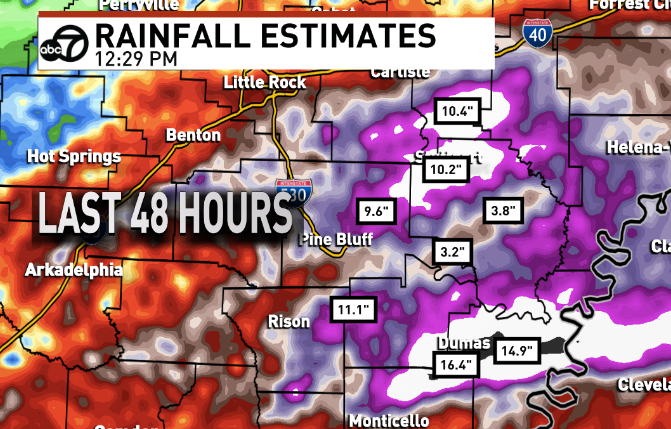 BREAKING: 19.22 inches of rain have fallen at Rowher in Desha county over the past 48 hours. This is the 2nd highest 48 hour total in Arkansas state history. This surpasses the #3 spot from Dierks in July 2019. Danville on 12-4-1982 still claims the #1 spot with 21.45".