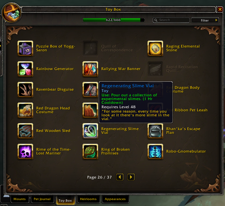 Toy #622, the Regenerating Slime Vial! Another one from doing the Maldraxxus calling, I'm glad I won't have to farm it cause the rare it drops from is a drag to kill. https://twitter.com/KAlfakyn/status/1363330668231548933 …pic.twitter.com/glQCJI91lu