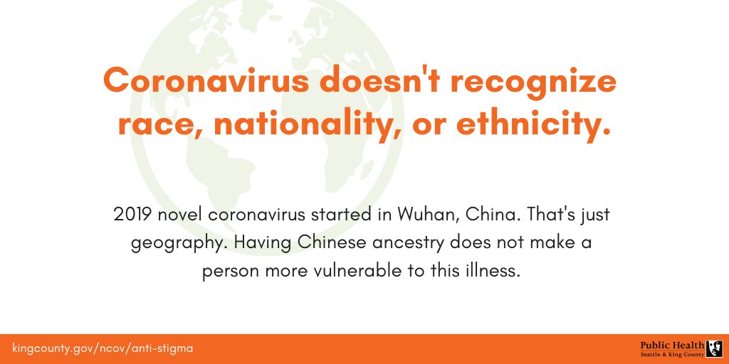 Misinformation about #coronavirus can create fear and hostility that hurts people and makes it harder to keep everyone healthy. Take advantage of these resources to prevent, interrupt and respond to stigma: http://kingcounty.gov/ncov/anti-stigma …pic.twitter.com/Ra8Hq25FZW