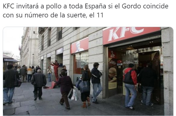 A ver si este año que no he comprado lotería sale el número de KFC y al menos me llevo pollo frito gratis